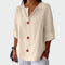 Stilingas lino marškinėlis kreminės spalvos, su patogia apdaila ir 3/4 ilgio rankovėmis, kuris suteikia nesenstančio stiliaus. Jame yra mediniai mygtukai priekyje, kurie suteikia natūralų ir minimalistinį estetiką, o laisvas siluetas daro jį idealiu kasdieniams pasirodymams. Lengvai derinamas su džinsais ar audiniais kelnėmis, kad sukurtumėte kasualų, tačiau ir elegantišką įvaizdį.