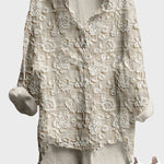 Marškiniai Sand & Bloom derina natūralų eleganciją su moderniu charakteriu. Su žemiškais atspalviais ir detalėmis, primenančiomis žydėjimą, tai yra ideali pasirinkimo tiems, kurie ieško komforto ir subtilaus rafinuotumo.