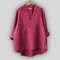 Elegantiška lininė bluzonė, kuri skleidžia minimalistinę eleganciją ir laiką nepavaldi stilių. Gilus V formos iškirpimas su elegantišku apykakle suteikia modernią liniją, o laisvas kirpimas užtikrina komfortą ir judėjimo laisvę. Asimetrinė apdaila su ilgesne nugarine dalimi užbaigia elegantišką estetiką.