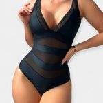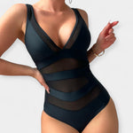 Šis elegantiškas visas maudymosi kostiumėlis sujungia moterišką siluetą su išmaniu kūno formavimu. V formos iškirptė ir permatomos detalės suteikia seksualumo, o Tummy Control technologija užtikrina paramą ir stabilumą, kad būtų matomas sklandesnis siluetas.
