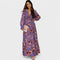 Ši ilga gėlių suknelė yra romantizmo ir rafinuotumo apibrėžimas. Su sklandžiu kirpimu ir nepriekaištingu prigludimu, ji pabrėžia siluetą su subtiliu "V" formos iškirpimu ir akcentuota liemeniu, kuriame yra raukiniai. Gėlių raštas suteikia vizualui gyvybingumo, o ilgos, šiek tiek pūstos rankovės atneša žavesio ir lengvumo. Ideali lauko vestuvėms, ypatingiems vakarienėms ar elegantiškiems pasivaikščiojimams.