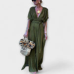 Elegantiška suknelė, įkvėpta Graikijos, kuri sujungia paprastumą ir rafinuotumą su gražiu pintu kaspinu. Šis modelis puikiai tinka tiek atsitiktinėms progoms, tiek glamūriniams renginiams. Su aukšta juosmens linija, apykaklės dizainu ir reguliuojamomis juostelėmis ant pečių, sukuria unikalų ir rafinuotą įvaizdį, puikiai tinkantį kurortiniam stiliui.