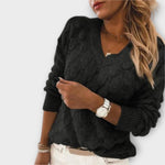 Noemier megztinis moterims su V formos iškirpte sujungia nesudėtingą eleganciją ir laiką atlaikančią komfortą. Su šiuo patraukliu V formos iškirpimu ir laisvu siluetu, šis megztinis siūlo tobulą stiliaus ir komforto derinį. Nesvarbu, ar tai kasdieniai reikalai, biuras, ar atsipalaidavimas savaitgalį – Noemier visada yra teisingas pasirinkimas.