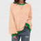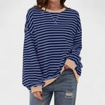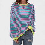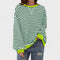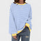 Renata - Kasdienis ilgomis rankovėmis apvalios iškirptės dryžuotas megztinis