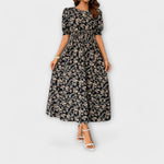 Amelia – Suknelė su Apvaliu Iškirpimu ir Gėlių Raštu
