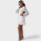 Ši trumpa ir prigludusi suknelė, pagaminta iš nėrinių, sukuria moterišką ir rafinuotą įvaizdį. Su ilgomis rankovėmis ir subtiliais nėrinių akcentais, ši suknelė puikiai tinka ypatingoms progoms arba vakarui mieste. Prigludęs siluetas, derinamas su volanų kraštu, sukuria modernų ir elegantišką įvaizdį.