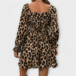 Palikite gerą įspūdį su šia elegantiška suknele, turinčia patrauklų leopardų raštą, kuris derina sofistikuotą kvadratinį iškirpimą su moteriška A formos sijonu.