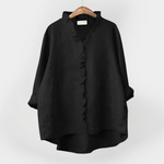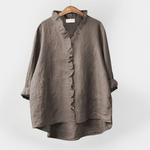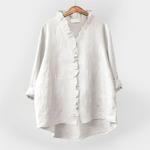 Marškiniai su volanu ant apykaklės ir mygtukais. Patogūs ir elegantiški kiekvienai progai.