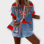 Patirk vasarą su Jorelle apranga. Šis dviejų dalių komplektas sujungia gyvą ožkos raštą su lengvu audiniu, kuris suteikia žaismingą pojūtį tavo įvaizdžiui. Puikiai tinka apsilankymui turguje ar atsipalaidavimui šiltomis popietėmis, Jorelle įneša šviežios energijos į tavo garderobą.