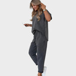 Šis co-ord komplektas siūlo modernų komfortą ir minimalų estetiką — puikiai tinka miesto pasivaikščiojimams, kavinėms ar nerūpestingoms akimirkoms namuose.