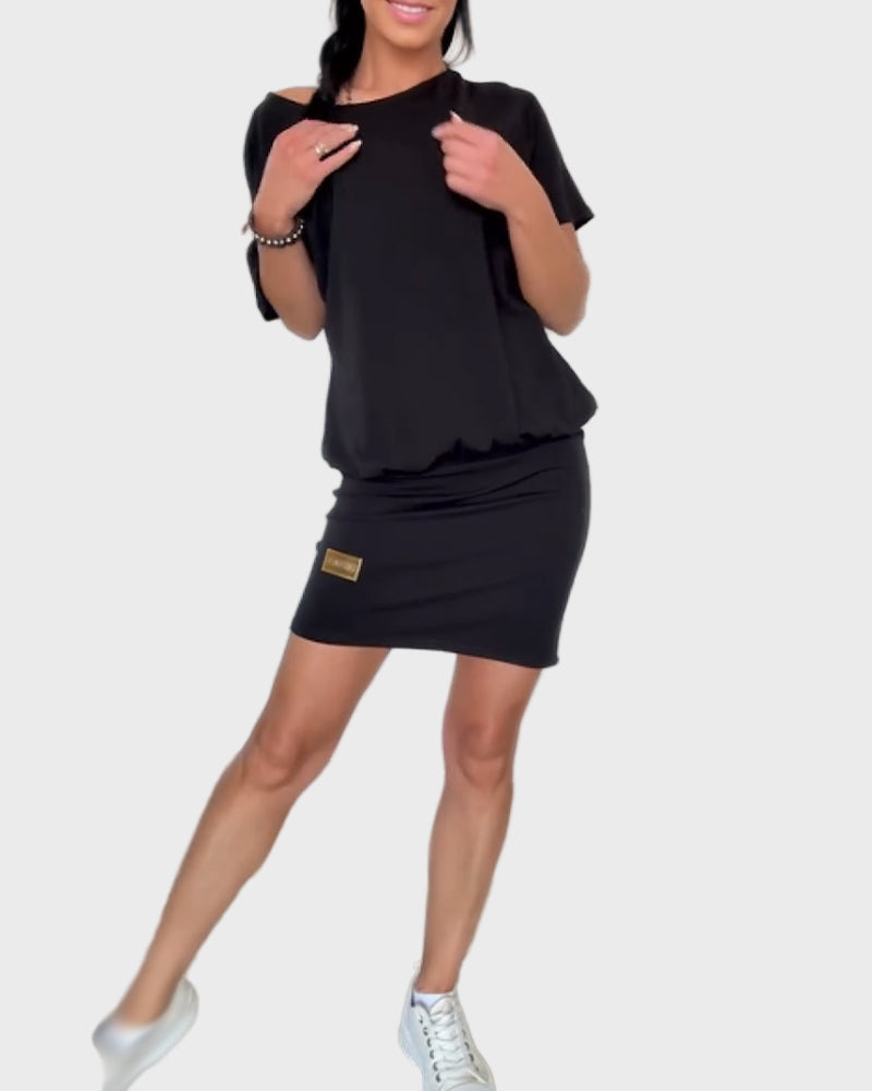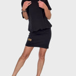 Ši mini suknelė juoda spalva derina komfortą su elegantišku stiliumi. Jos laisvas dizainas su trumpomis rankovėmis daro ją idealia kasdienėms išvaizdoms ir neformaliems pasivaikščiojimams. Puikiai dera su sportbačiais, kad sukurtumėte modernią ir jaunatvišką išvaizdą.