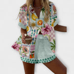 Apšvieskite savo vasarą su Maevin trumpu komplektu vaisių raštu – žaismingas ir šviežias prisilietimas jūsų kasdieniam patogumui. Su skaniais vaisių vaizdais ir lengva siluetu, šis komplektas suteikia džiaugsmo kiekviename žingsnyje. Puikiai tinka pasivaikščiojimams paplūdimyje, brunch'ui su draugėmis ar stilingoms atsipalaidavimo akimirkoms.