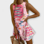 Mirava – Mini Suknelė Rožinės Spalvos Raštu