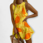 Atrask mini suknelę Orvienne su krabų raštu – tobula derinio pasirinkimas iš paplūdimio žavesio ir patogumo kasdienybėje. Su linksmu krabų motyvu lengvame, kvėpuojančiame audinyje, ši suknelė idealiai tinka atostogoms, neformaliems pasimatymams ar atsipalaidavusioms pasivaikščiojimams paplūdimyje.