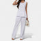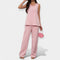 Idealiai tinka šiltoms dienoms, šis komplektas siūlo paprastą patogumą ir minimalų estetiką. Rankovių tatu švelniai apglėbia kūną, o plačios kelnės suteikia erdvės ir elegancijos jūsų kasdienei išvaizdai.