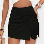 Elegantiški ir moteriški, šie aukštos juosmens šortai su sijonu ir subtiliu užrišimu priekyje pabrėžia siluetą su absoliučiu rafinuotumu. Idealiai tinka vasaros pasirodymams, derina komfortą ir stilių kiekvienai progai.