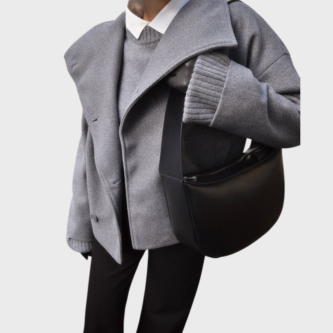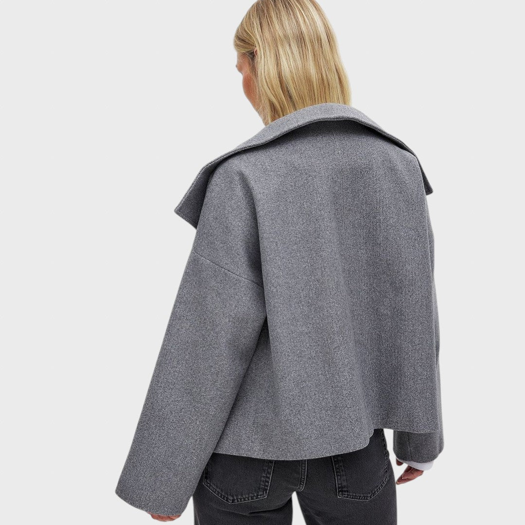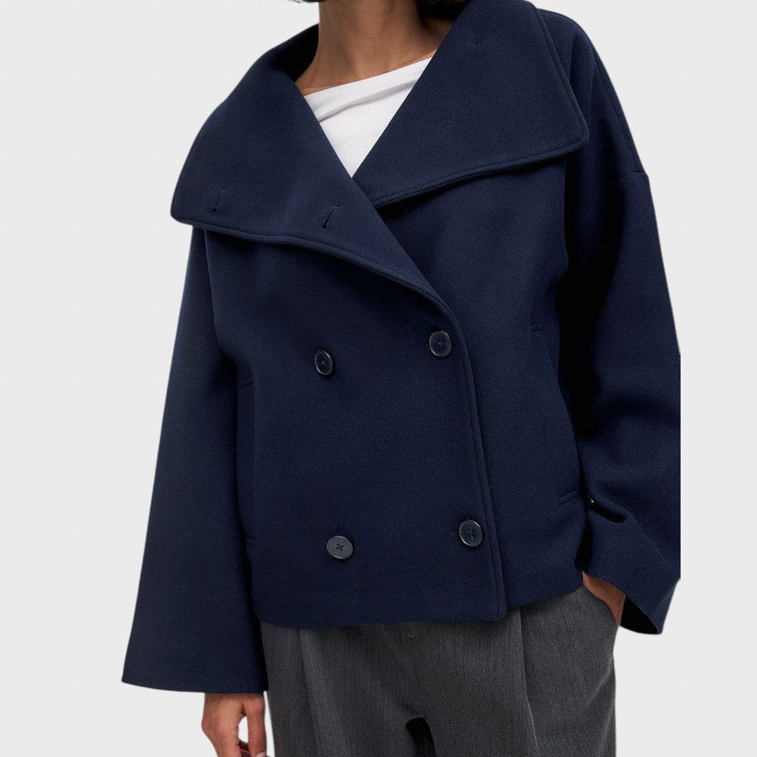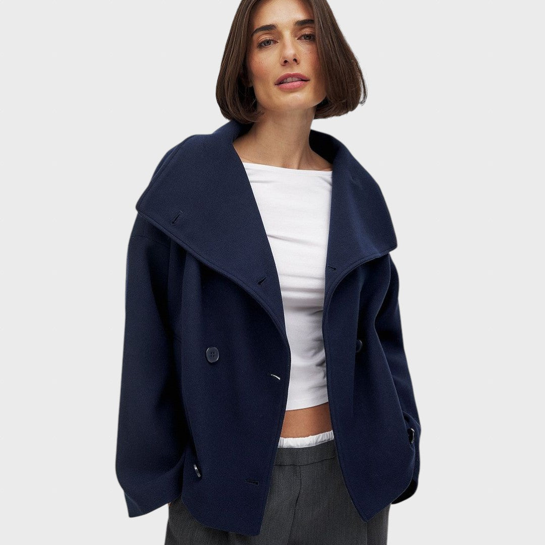 Arina – Trumpa vilnonė striukė su dvigubu užsegimu