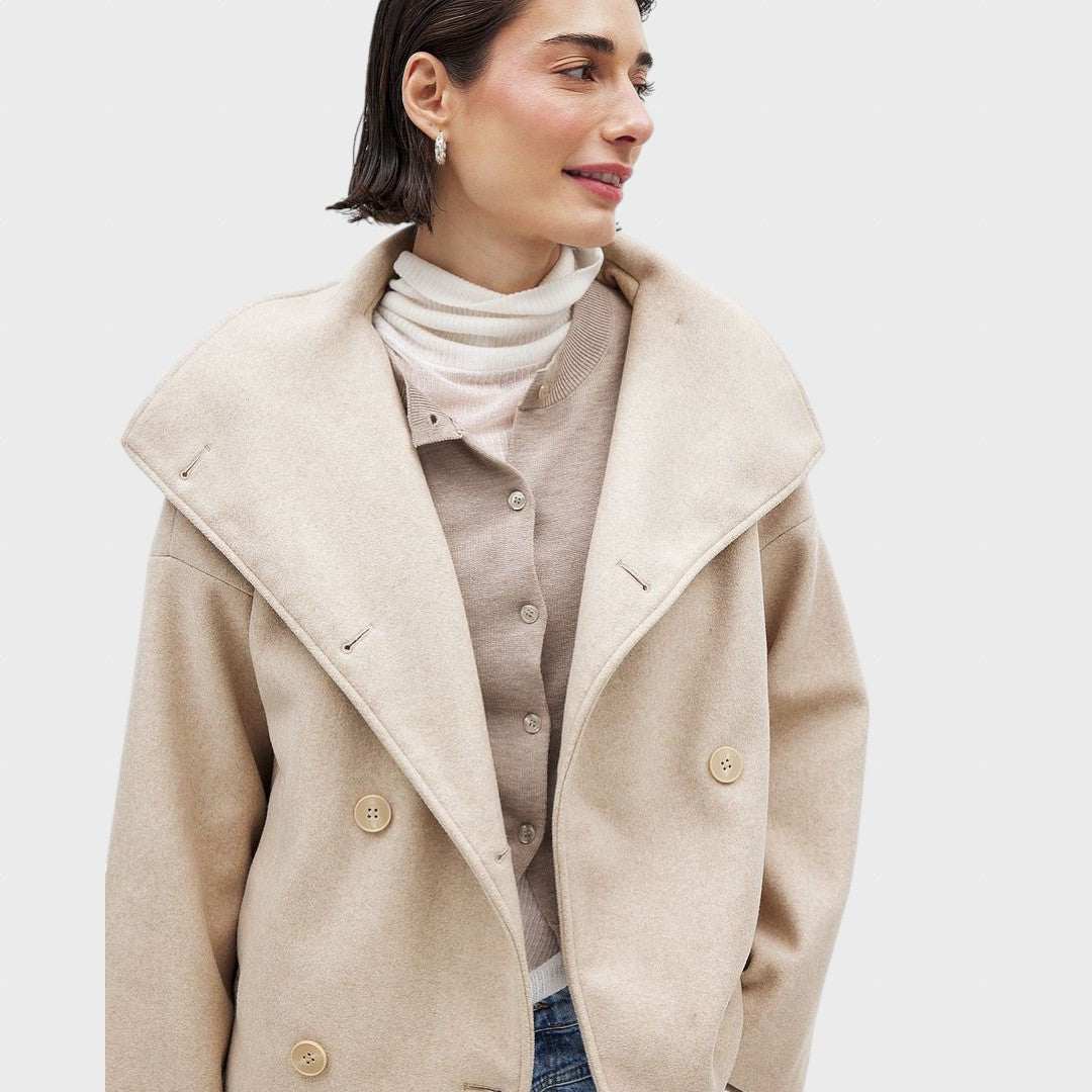 Arina | Trumpa vilnonė striukė su dvigubu užsegimu