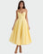 Stulbinanti midi suknelė ryškiai geltonos spalvos, kuri skleidžia eleganciją ir moteriškumą. Korseto dizainas pabrėžia dekoltė su subtilia detale, o turtinga A formos sijonas suteikia judesio ir romantišką nuotaiką. Idealu vasaros išėjimams, vakarėliams ir ypatingoms progoms.