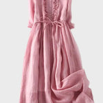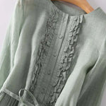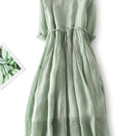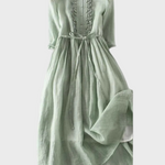 Ši paprasta ir elegantiška ilga suknelė švelnios žalios spalvos skleidžia gaivumą ir natūralią eleganciją. Su lengvu siluetu ir laisvu pritaikymu, ji švelniai apgaubia figūrą ir suteikia unikalų komfortą kiekvieną dienos akimirką.