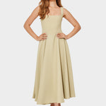 Laiko Patvarus Oro Midi Suknelė su Išskirtine Linija ir Natūralia Judesių