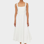 Parodykite savo eleganciją ir laiką nepalenkiamą stilių su šia balta midi suknele minimalistine linija. Jos švarus dizainas, kartu su puikiu pritaikymu, daro ją idealiu pasirinkimu oficialioms ir pusiau oficialioms progoms.