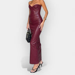 Minkštas Oda Midi Suknelė su Šiuolaikine Stiliaus Išraiška