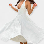 Išskirtinė suknelė, kuri pabrėžia moteriškumą kiekviena detale. Ideali vestuvėms, vakarienėms ir elegantiškiems renginiams, kuriems reikia subtilios prabangos.