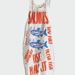 „Fish Market“ yra ypatingas ir žaismingas kombinezonas, primenantis vintage plakatą iš žuvų turgaus. Ryškios raudonos ir mėlynos detalės su žodžiais „SARDINES“, „FRESH FISH“, „FISH MARKET“ kartu su grafika žuvų sukuria ryškų ir unikalų įvaizdį.