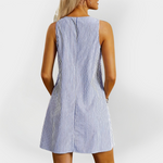 Ši dryžuota suknelė yra puikus pasirinkimas šiltomis dienomis, siūlanti komfortą ir eleganciją pačiu paprasčiausiu būdu.
