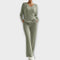 Modernus tinklinis dizainas, komplektas apima ilgomis rankovėmis V formos iškirptės viršų ir plačias kelnes – tobula komforto ir elegancijos kombinacija, skirta poilsiui namuose arba atsitiktiniams išėjimams.