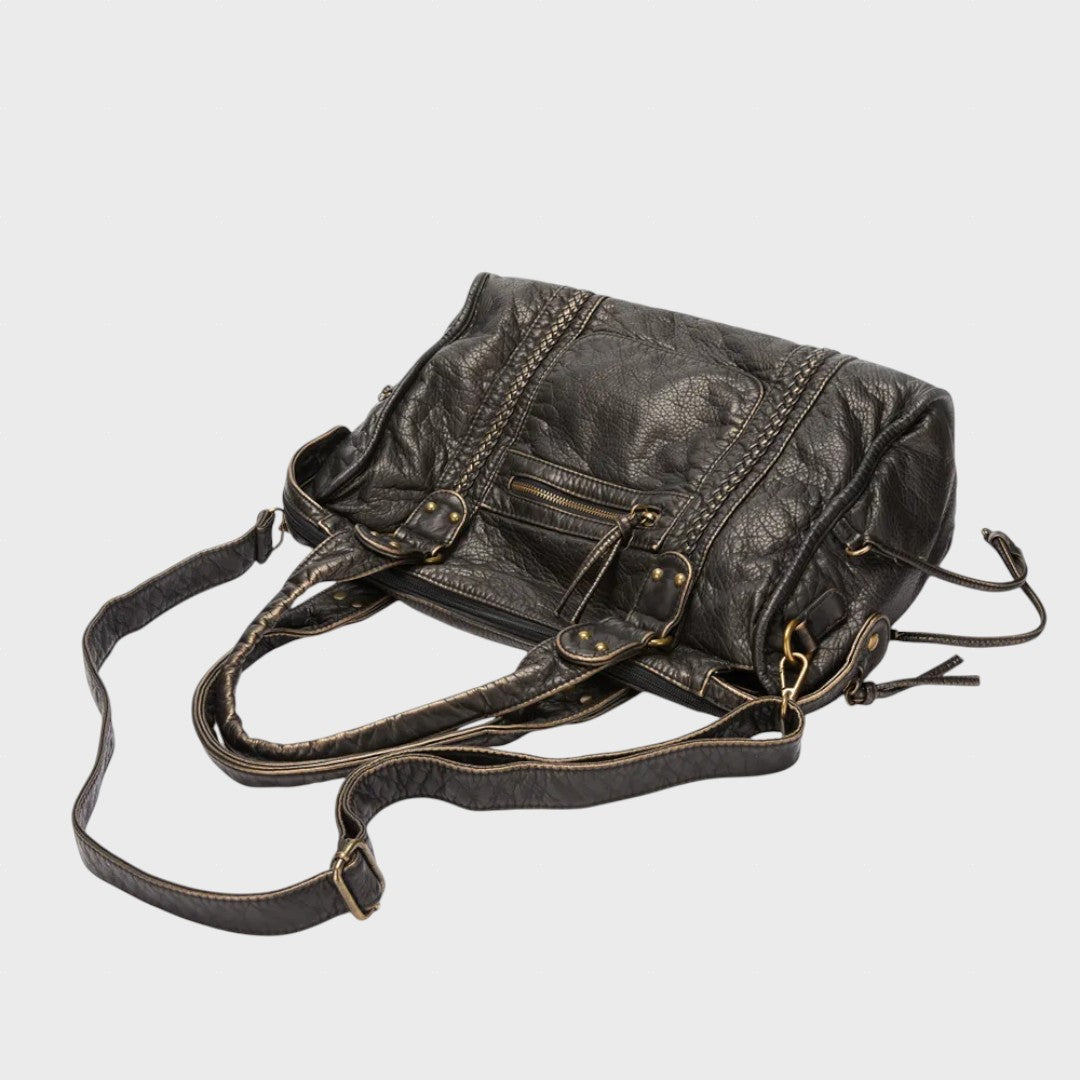 „Jovita“ – tai idealus pasirinkimas toms, kurios vertina senovinio žavesio ir funkcionalumo derinį. Pagaminta iš aukštos kokybės dirbtinės PU odos su sendinto efekto paviršiumi, rankinė išsiskiria subtiliomis tamsiai auksinėmis detalėmis ir erdviu dizainu. Puikiai tinka studentėms, profesionalėms ar mados mylėtojoms – „Jovita“ stilingai lydi jus nuo ryto iki vakaro.