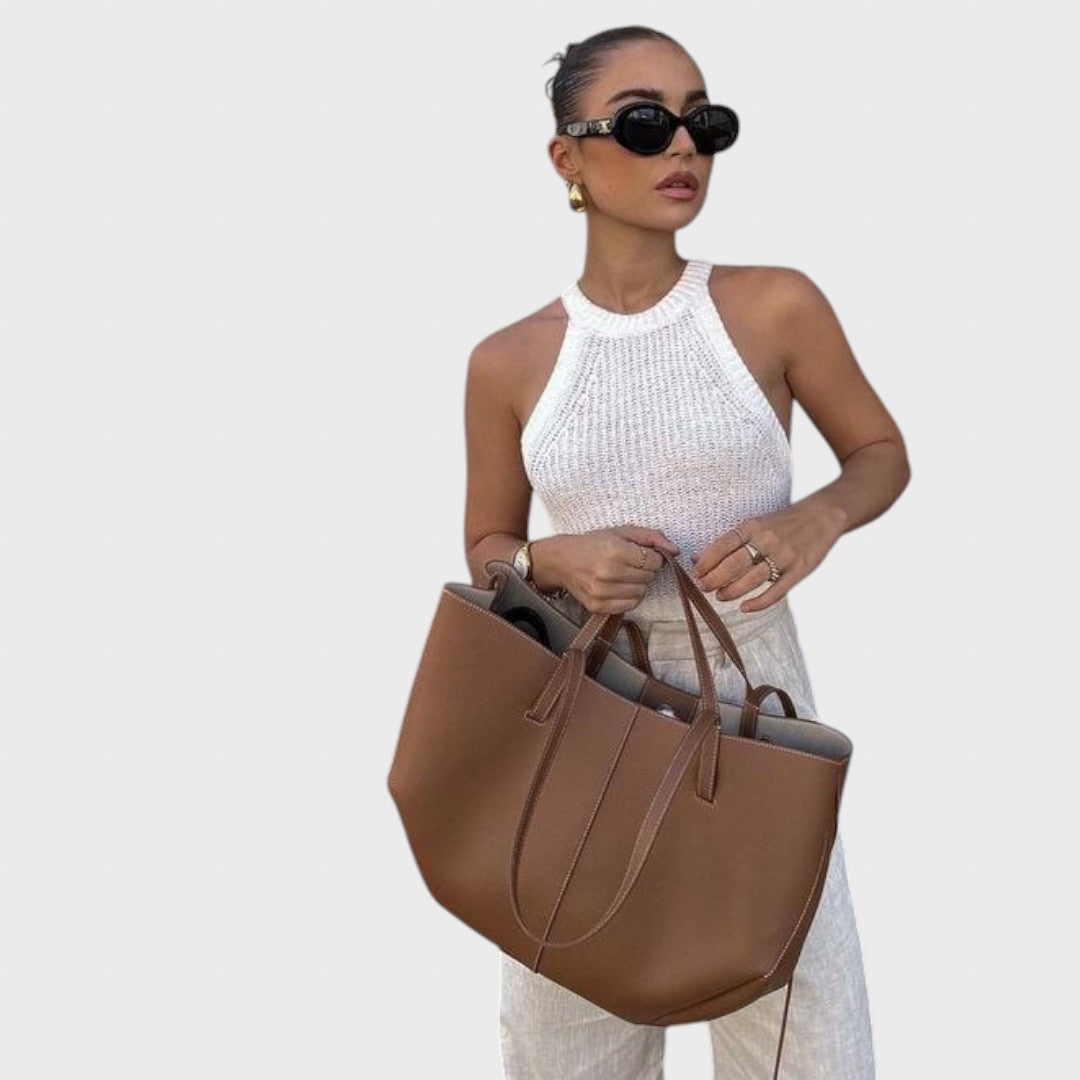 Laimė – Elegantiška odinė rankinė su rankenomis ir nuimamu dirželiu