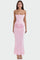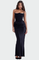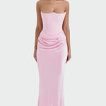Įspūdinga ir jausminga suknelė be petnešų, su prigludusia siluetu, kuris pabrėžia figūrą. Išskirtinė detalė su elegantiškomis raukšlėmis ties juosmeniu suteikia moteriškumo ir unikalumo, o maksi ilgis prideda laikinos elegancijos. Puikiai tinka oficialioms vakarėliams ir spindinčioms išvaizdoms.
