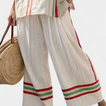 Įkvėptas jūrinio vėjo ir gyvybingų vasaros tonų. Daisy komplektas natūralios bazės su raudonomis ir žaliomis juostelėmis sukuria pusiausvyrą tarp klasikinio ir linksmo, siūlydamas atsipalaidavusią išvaizdą su identitetu ir charakteriu.