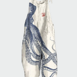 Kombinezonas „Octopus“ ant drobės sujungia meną ir stilių į įspūdingą kūrinį. Natūralios baltos spalvos fone, mėlynas japoniško stiliaus aštuonkojo raštas išsiskiria detalėmis, sukuriant jūrinę aurą, kuri traukia žvilgsnius.