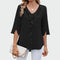 Elegantiška juoda palaidinė su romantiškais volanais, suteikiančiais judesio ir moteriškumo. V formos iškirptė su subtiliais volanais priekyje pabrėžia stilių, o 3/4 ilgio rankovės su šoniniu plyšiu suteikia modernų akcentą. Ideali vakariniams pasimatymams, taip pat šiuolaikiškoms išvaizdoms biure, lengvai derinama su kelnėmis ar sijonu, kad sukurtumėte subtilų efektą.