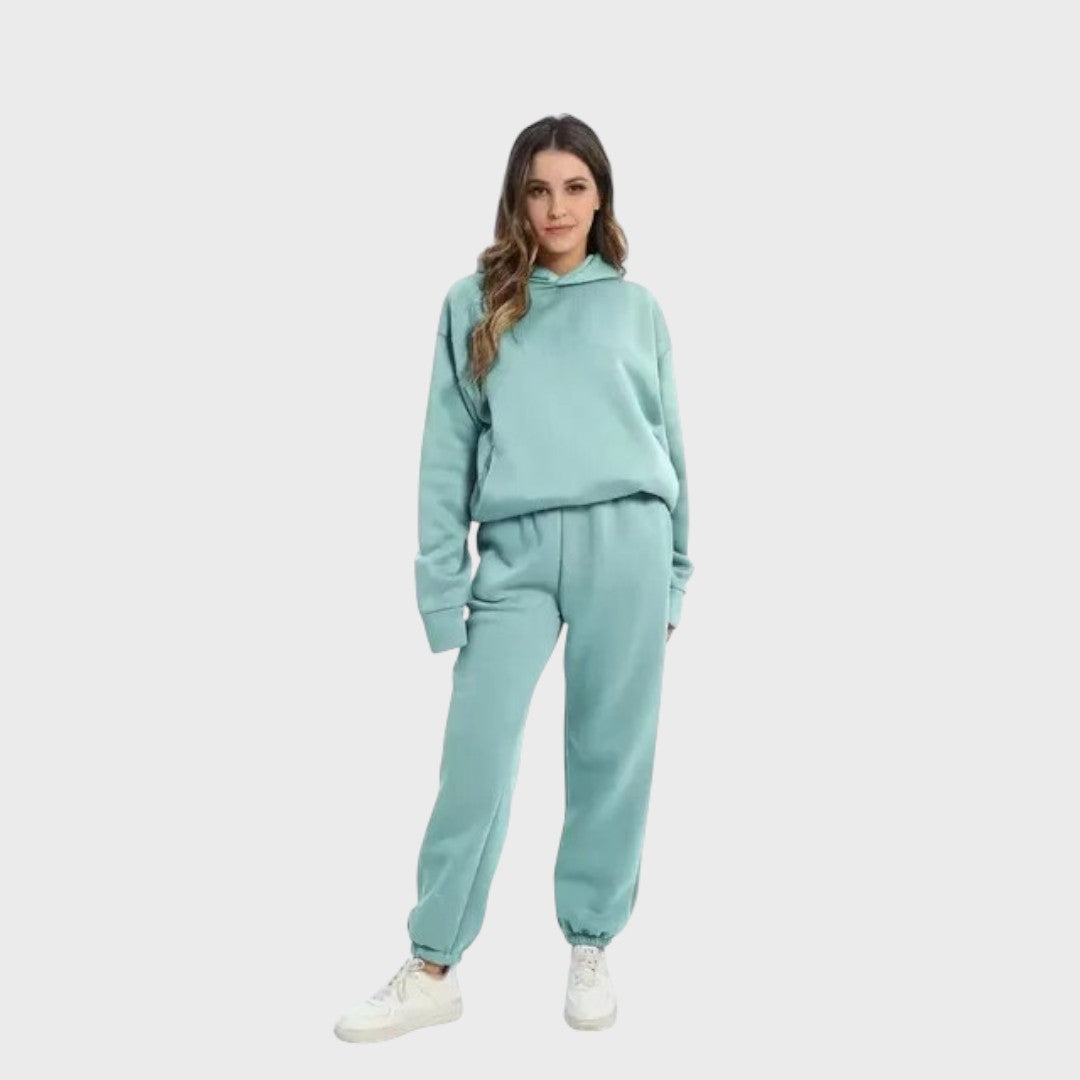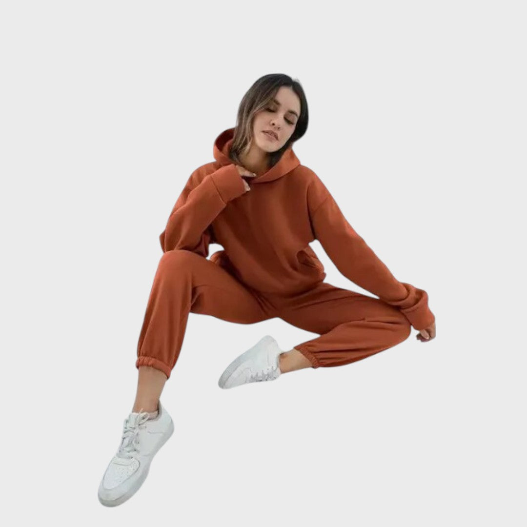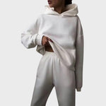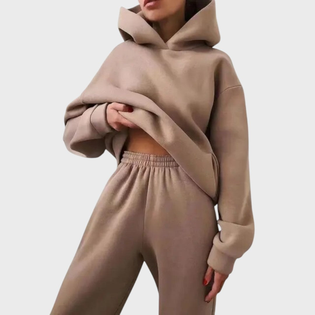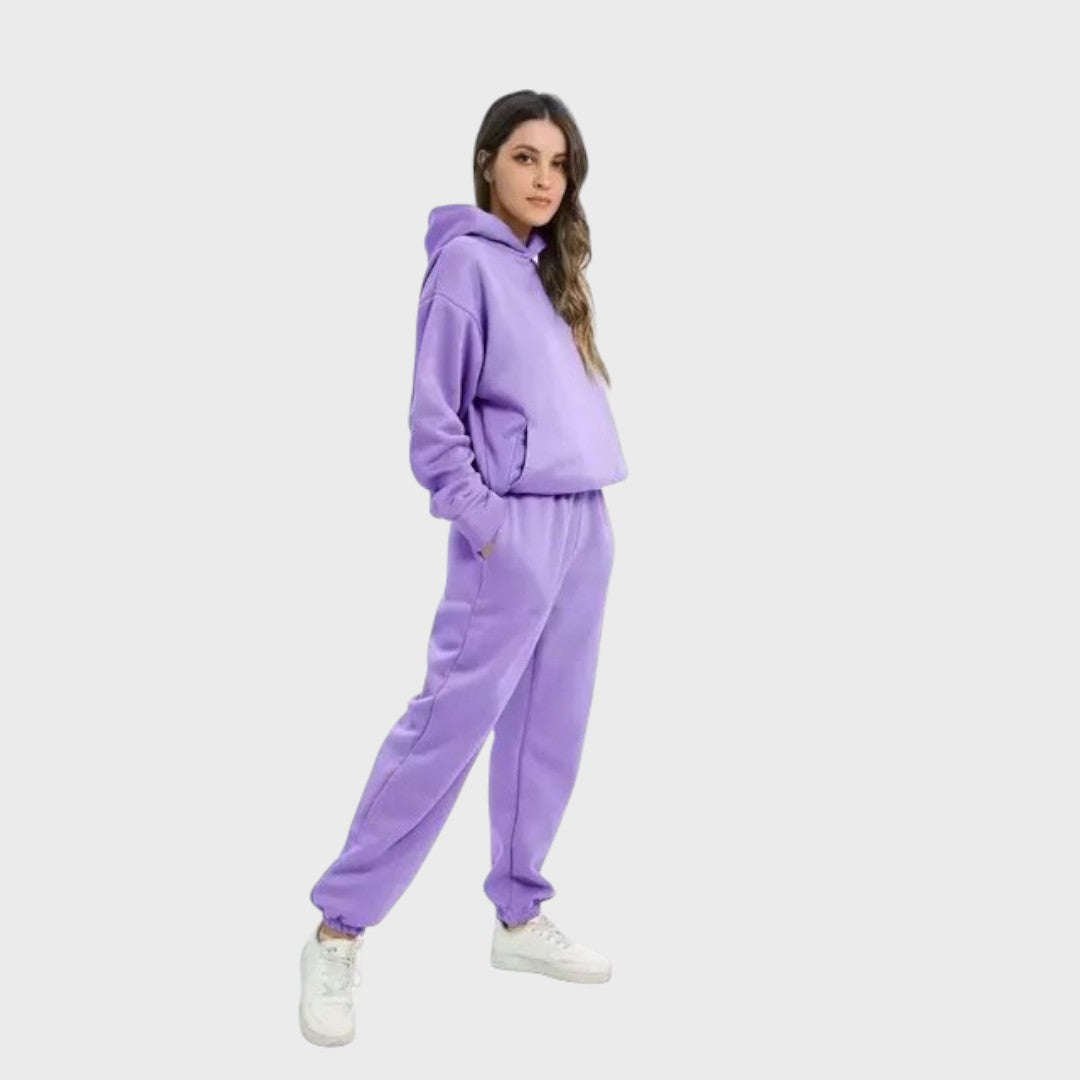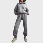 • Prabangus audinių mišinys: Gobtuvo megztinis ir treninginės kelnės suteikia aukščiausio lygio komfortą ir patvarumą jaukioms žiemos valandoms.