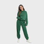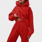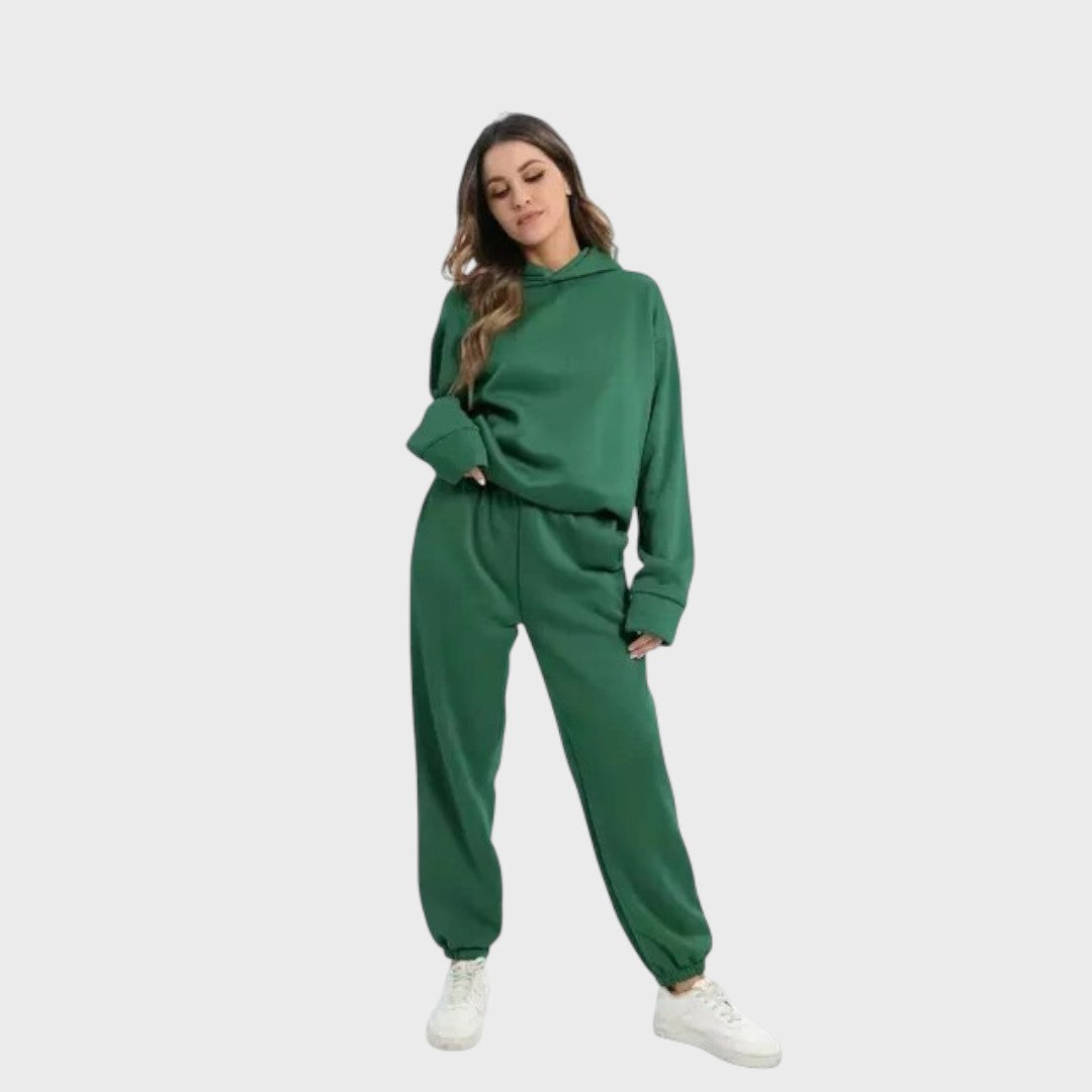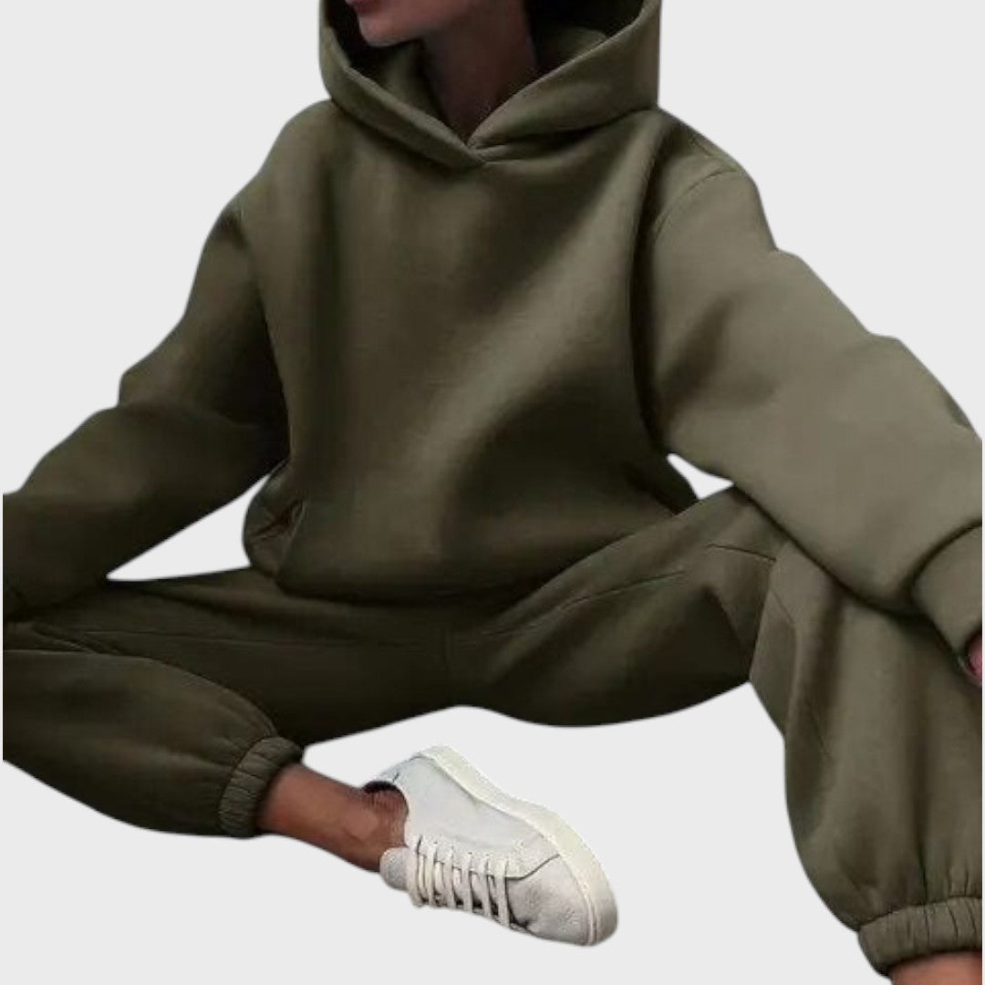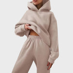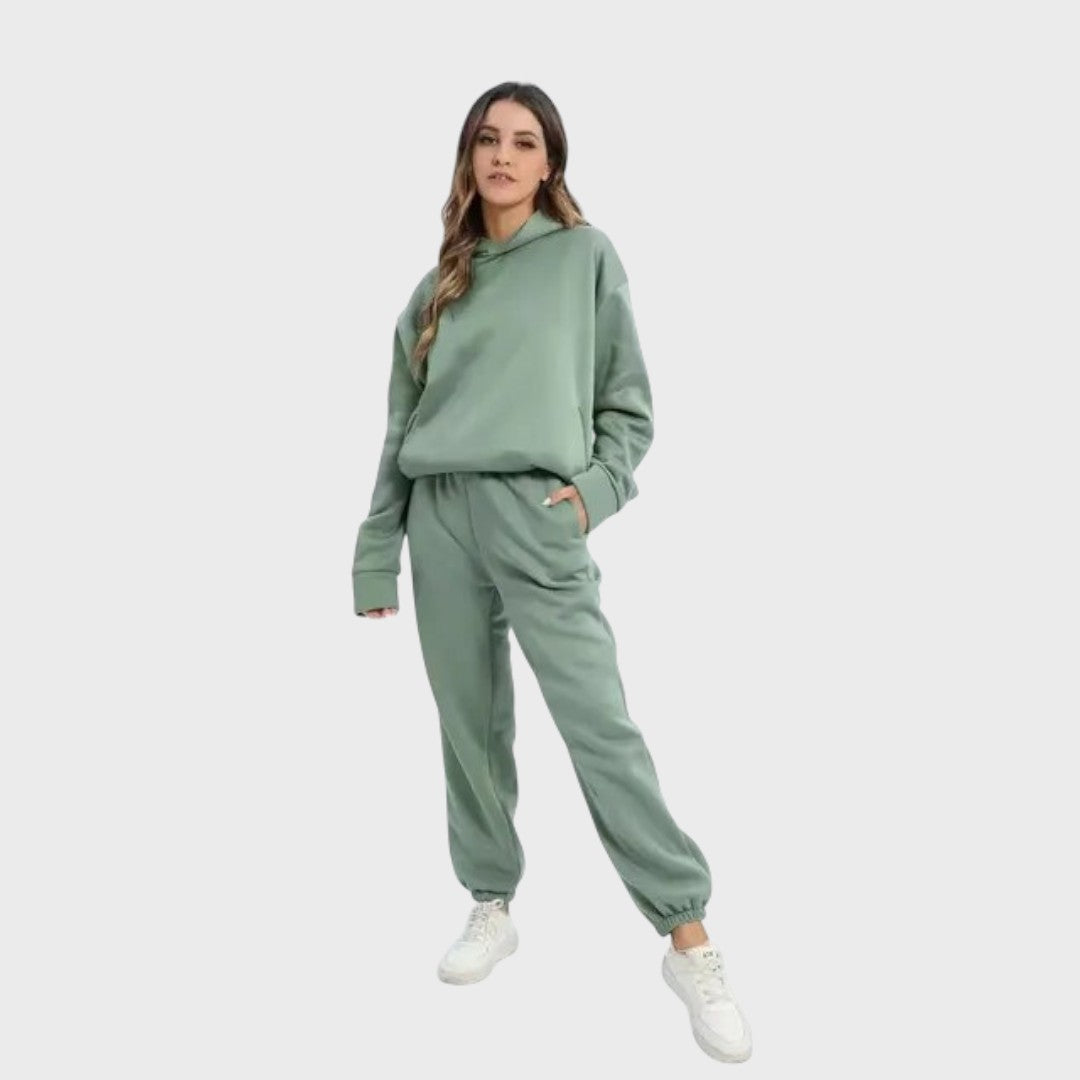 • Prabangus audinių mišinys: Gobtuvo megztinis ir treninginės kelnės suteikia aukščiausio lygio komfortą ir patvarumą jaukioms žiemos valandoms.
